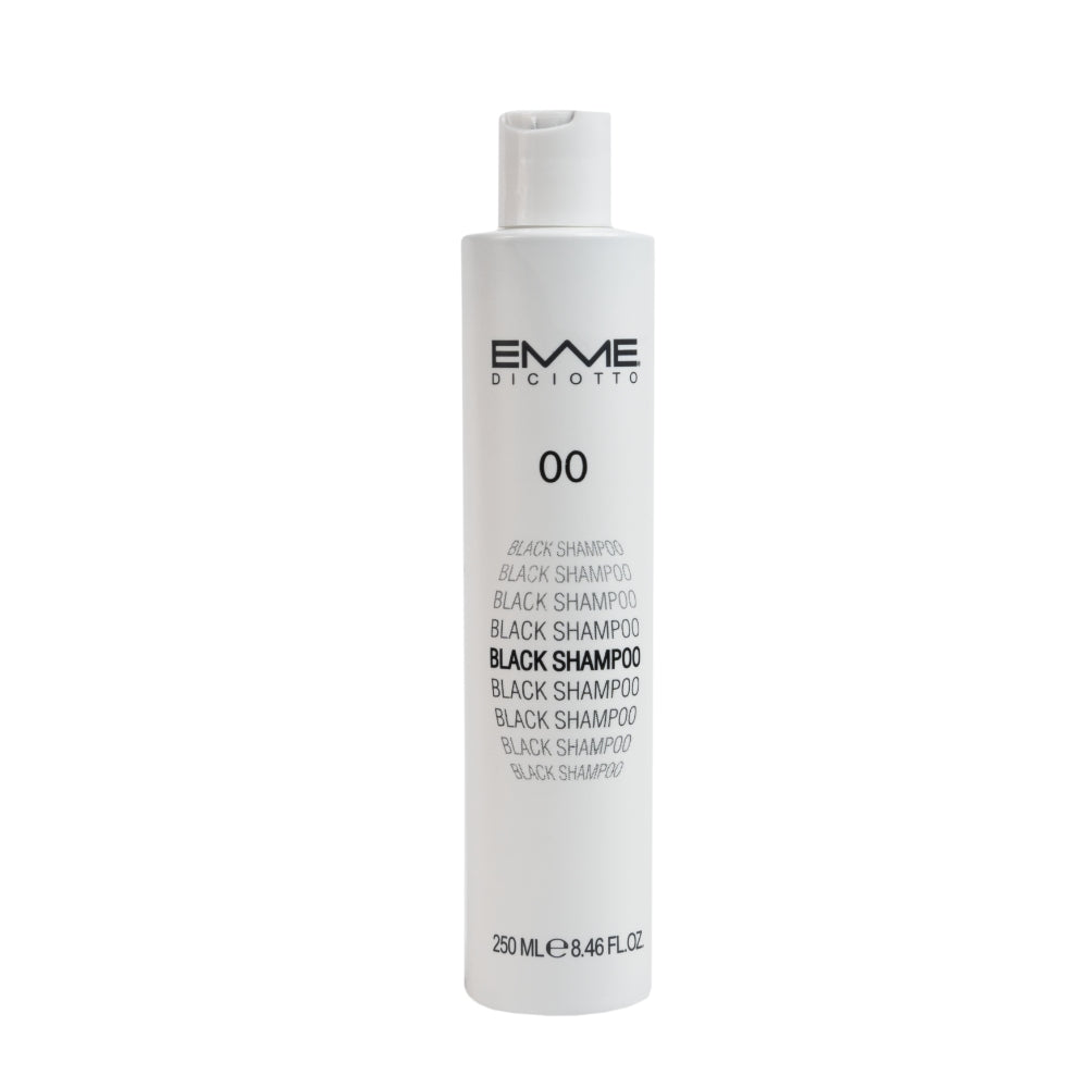 Naujausias Emmediciotto produktas - 00 juodas šampūnas. Gryni pigmentai specifinės tekstūros dėka geriau įsiskverbia į plauką ir pabrėžia natūralių arba dažytų plaukų spindesį.