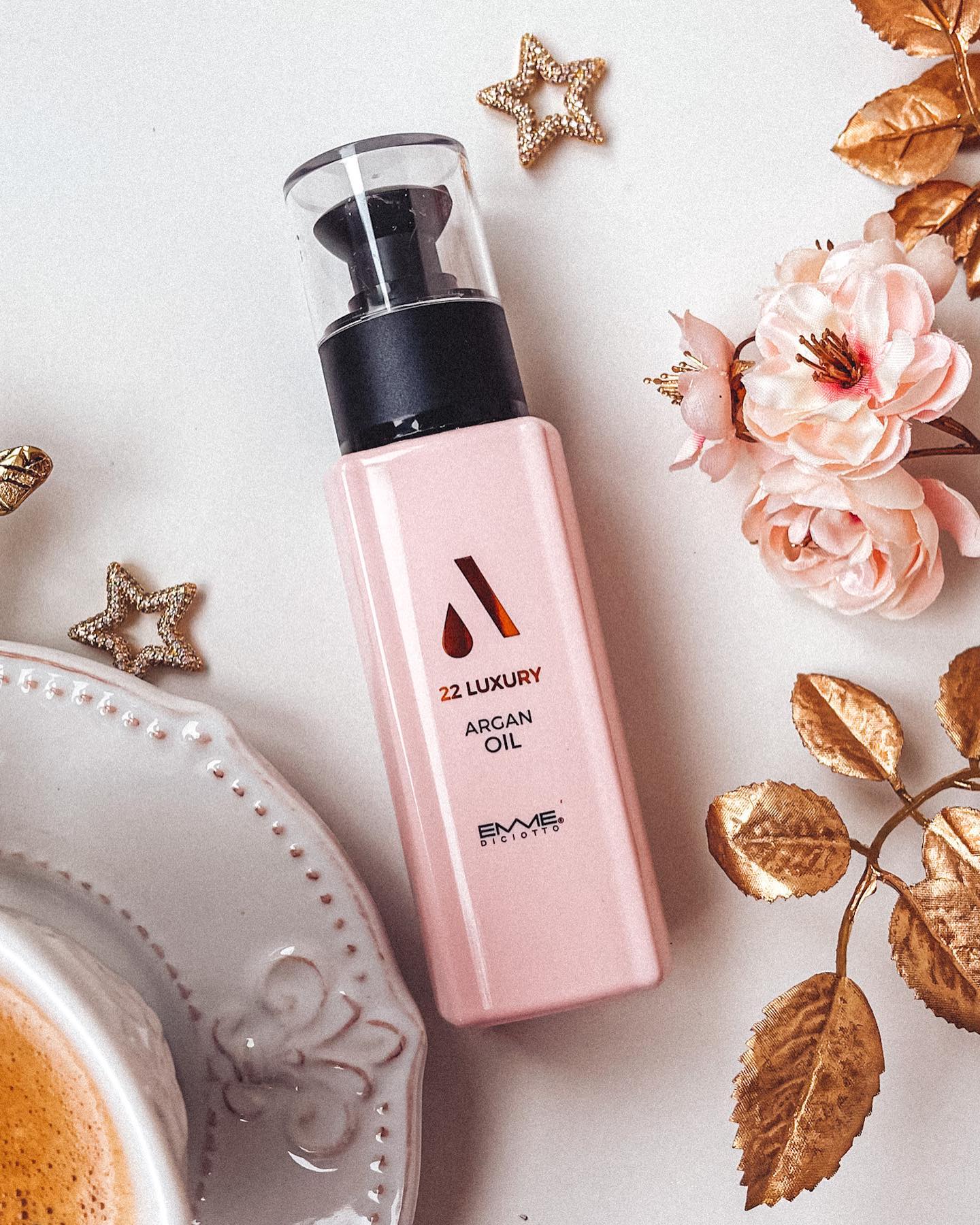 GROŽIO KAUKĖ: galite sušildyti nedidelį kiekį 22 Luxury Argan rankose ir švelniai, sruoga po sruogos, įmasažuoti į sausus plaukus, kad jie būtų pamaitinti ir atrodytų tarsi šilkiniai. Palikite aliejų ant plaukų 1–4 val. ir po to išplaukite plaukus 22 Luxury Argan šampūnu bei palepinkite 22 Luxury Argan kauke.