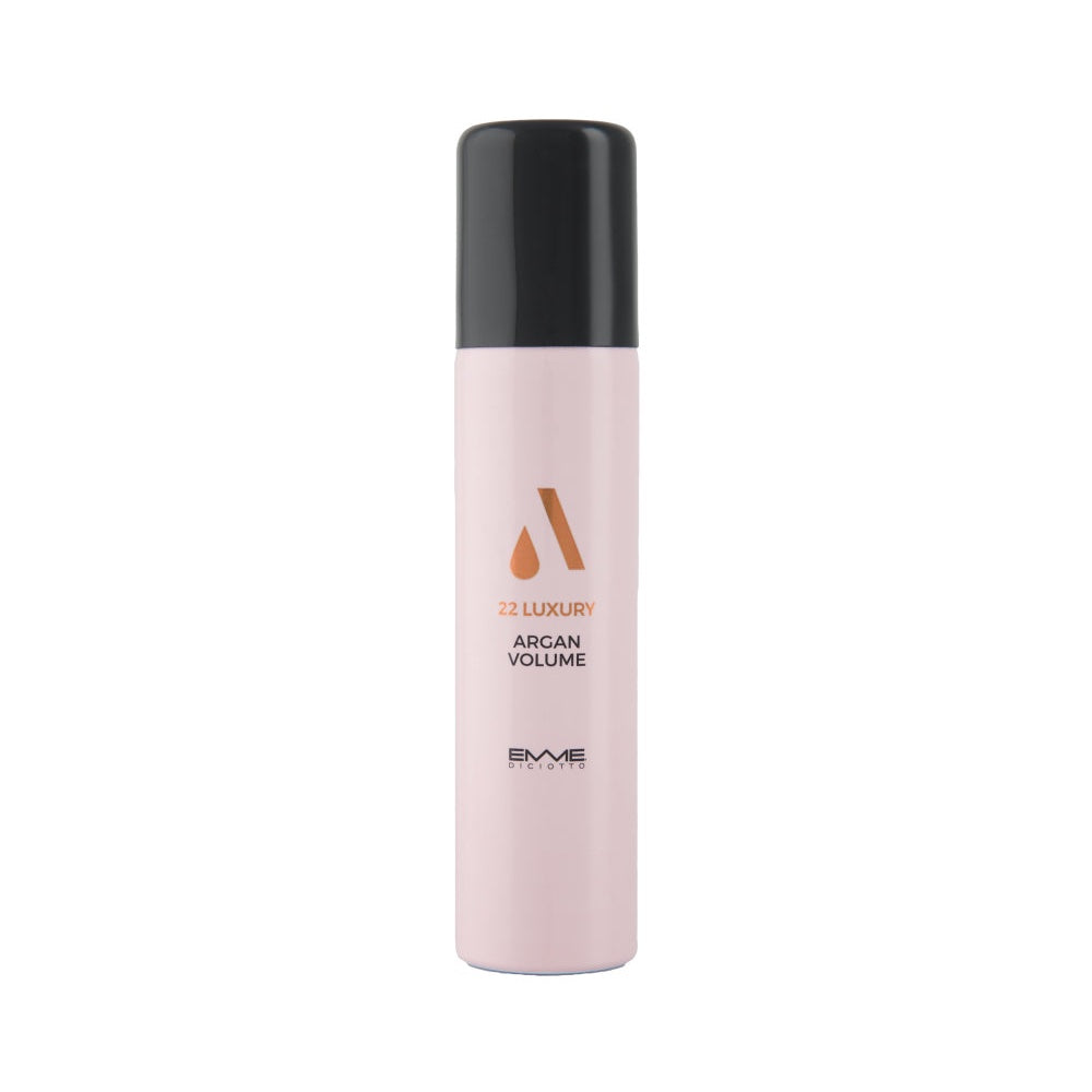 Išplovę ir rankšluosčiu nusausinę galvą nedideliu kiekiu 22 Luxury Argan apimties purškiklio papurkškite plaukų šaknis ir juos džiovindami modeliuokite šukuoseną.