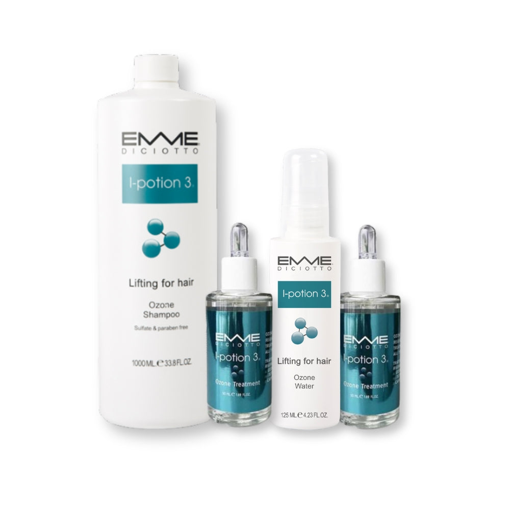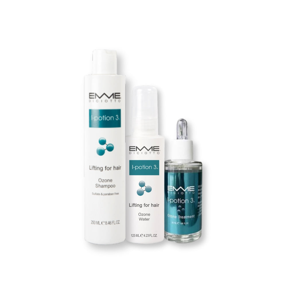 Išplaukite plaukus Ozonuotu šampūnu arba turimu namuose, nusausinkite rankšluosčiu. Padalinkite plaukus į dvi sekcijas ir gerai paskirstykite ampulės dozes, - ant kiekvienos sekcijos po keturias dozes iš aplikatoriaus (abiems sekcijoms 8 dozės). Plaukus iššukuokite "Tangle mouse" šukomis, taip geriau įmasažuosite į plaukus I-POTION 3 ampulę.